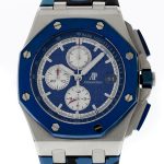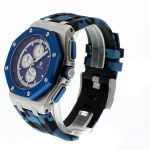 Audemars Piguet Royal Oak Offshore Chrono Camo blue. Neuste Replica von Audemars Piguet in unserem Angebot. Diese Sonderserie wurde von Audemars im Jahr 2019 auf der Baselworld vorgstellt und werden nach und nach ausgeliefert. Die Wartezeit beträgt bis zu einem Jahr. Der Listenpreis für dieses Modell liegt bei rund 25.000 Euro.