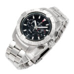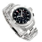 Das massive 44-Millimeter-Edelstahlgehäuse verleiht der Uhr eine starke Präsenz am Handgelenk und unterstreicht ihren tool-orientierten Charakter. Die markante, griffig gearbeitete Lünette sowie die sauber ausgeformten Kronen- und Drückerschütze vermitteln sofort das Gefühl von Stabilität und Leistungsfähigkeit. Das tiefschwarze Zifferblatt sorgt für einen kraftvollen optischen Eindruck, während die kontraststarken, großzügig belegten Leuchtindizes und Zeiger eine klare, sofortige Ablesbarkeit gewährleisten. Die drei Hilfszifferblätter sind harmonisch integriert und bilden ein ausgewogenes Gesamtbild, das Professionalität und technische Präzision ausstrahlt.