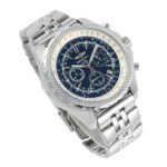 Im Inneren arbeitet bei der originale Uhr, ein mechanisches Chronographenwerk mit automatischem Aufzug, das für höchste Ganggenauigkeit und Zuverlässigkeit steht. Es repräsentiert die bewährte Präzision von Breitling und wurde speziell für anspruchsvolle Träger entwickelt, die Technik und Ästhetik gleichermaßen schätzen. Die verschraubte Krone mit dem Breitling-Logo und die sorgfältig verarbeiteten Drücker sorgen für optimale Bedienbarkeit und unterstreichen die Robustheit dieser Luxus-Uhr.