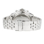 Das massive Edelstahlarmband fügt sich nahtlos in das Gesamtdesign ein und bietet einen angenehmen Tragekomfort bei gleichzeitig souveräner Stabilität. Sein Zusammenspiel aus polierten und satinierten Oberflächen verleiht der Uhr eine edle, zugleich sportliche Note.