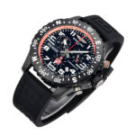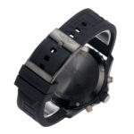 Das schwarze Kautschukarmband wurde speziell für aktiven Einsatz konzipiert. Es ist komfortabel, widerstandsfähig und passt sich optimal an das Handgelenk an. Die beidseitig drehbare Lünette mit Kompass-Skala ergänzt das funktionale Erscheinungsbild und bietet zusätzliche Orientierungsmöglichkeiten, etwa bei Outdoor-Aktivitäten oder Trainingseinheiten.