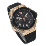 Ein strukturierter schwarzer Kautschukarmband sorgt für Tragekomfort und Langlebigkeit. Es verbindet sich mit der Uhr in einem sportlich‑eleganten Stil und garantiert durch die Faltschließe Stabilität am Handgelenk – ein idealer Begleiter für Alltag, Freizeit und gehobene Anlässe.