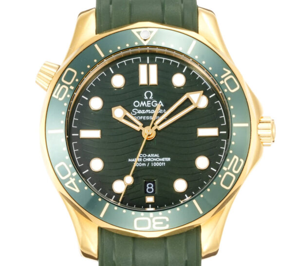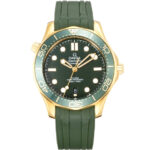 Die Replica Omega Seamaster Diver 300M 42mm Moonshine-Gold mit grüner Ausstattung ist ein Zeitmesser für alle, die sportliche Eleganz mit edlem Material und modernster Uhrmacherkunst kombinieren möchten. Eine Uhr mit starkem Charakter – luxuriös, technisch perfekt und unverwechselbar.