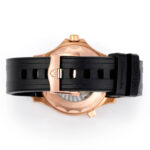 Das schwarze Kautschukarmband ist nicht nur optisch perfekt auf das Design abgestimmt, sondern bietet auch hervorragenden Tragekomfort. Es ist weich, widerstandsfähig und passt sich angenehm an das Handgelenk an. Die goldene Dornschließe vollendet das luxuriöse Erscheinungsbild.