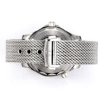 Das Edelstahlarmband ergänzt das Gehäuse perfekt und bietet durch seine solide Verarbeitung einen hohen Tragekomfort. Die fein abgestimmte Gliederkonstruktion schmiegt sich angenehm an das Handgelenk an, während die hochwertige Faltschließe für sicheren Halt sorgt. Alternativ ist dieses Modell auch mit Kautschukarmband erhältlich, wodurch der sportliche Charakter zusätzlich betont wird.