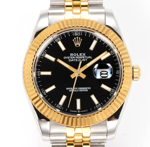 Replica Rolex Datejust 41mm M126333-0002 mit schwarzem Zifferblatt in Gelbgold und Edelstahl
